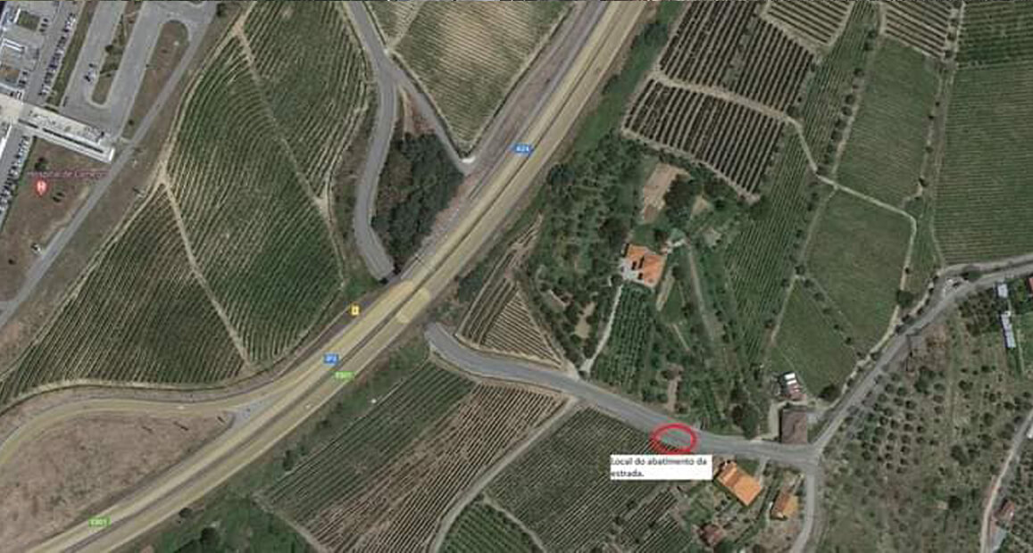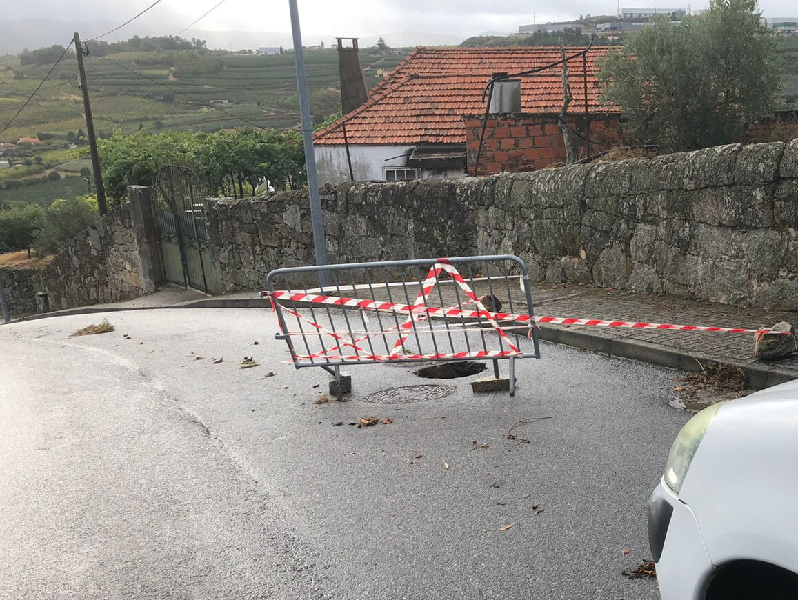 Resultado das fortes chuvas da noite passada, na estrada de acesso a Alvelos, após túnel da A24, ocorreu um abatimento parcial do piso da faixa de rodagem.