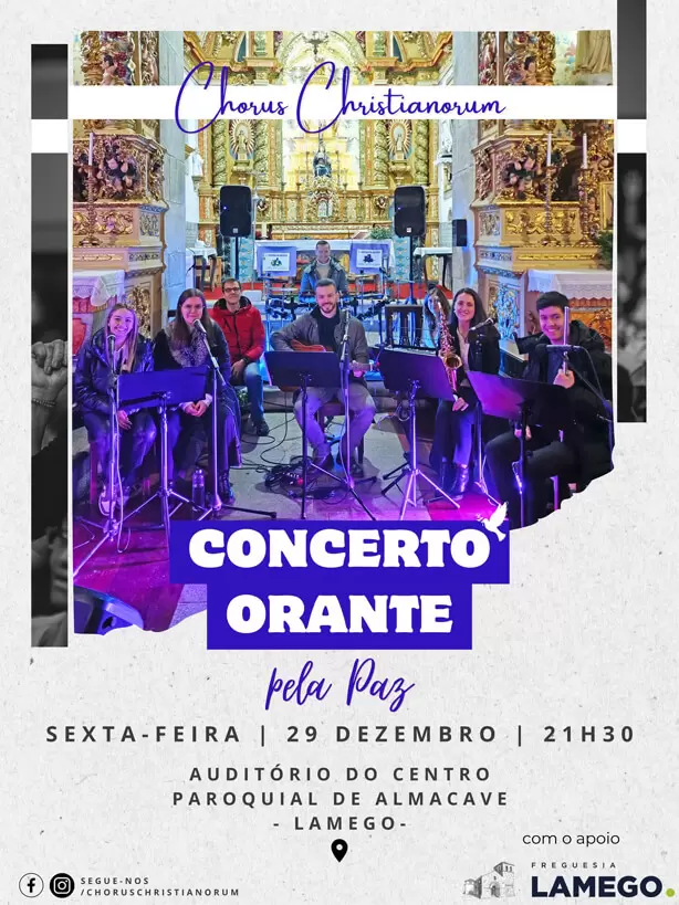 O grupo Chorus Christianorum irá realizar um concerto orante pela paz no mundo, que contará também com a participação de alguns elementos da comunidade paroquial.