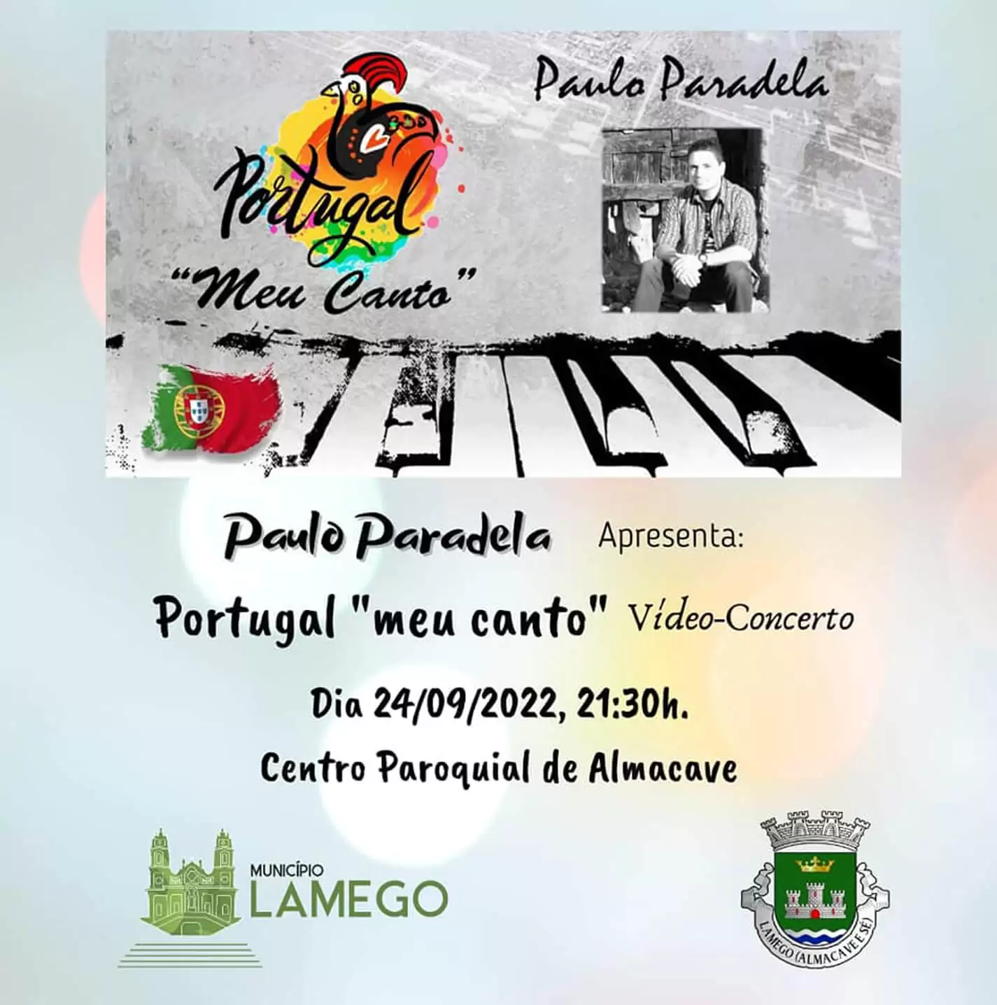Vídeo-concerto "Portugal, meu canto", por Paulo Paradela, no Auditório do Centro Paroquial de Almacave, dia 24 de setembro às 21h30.